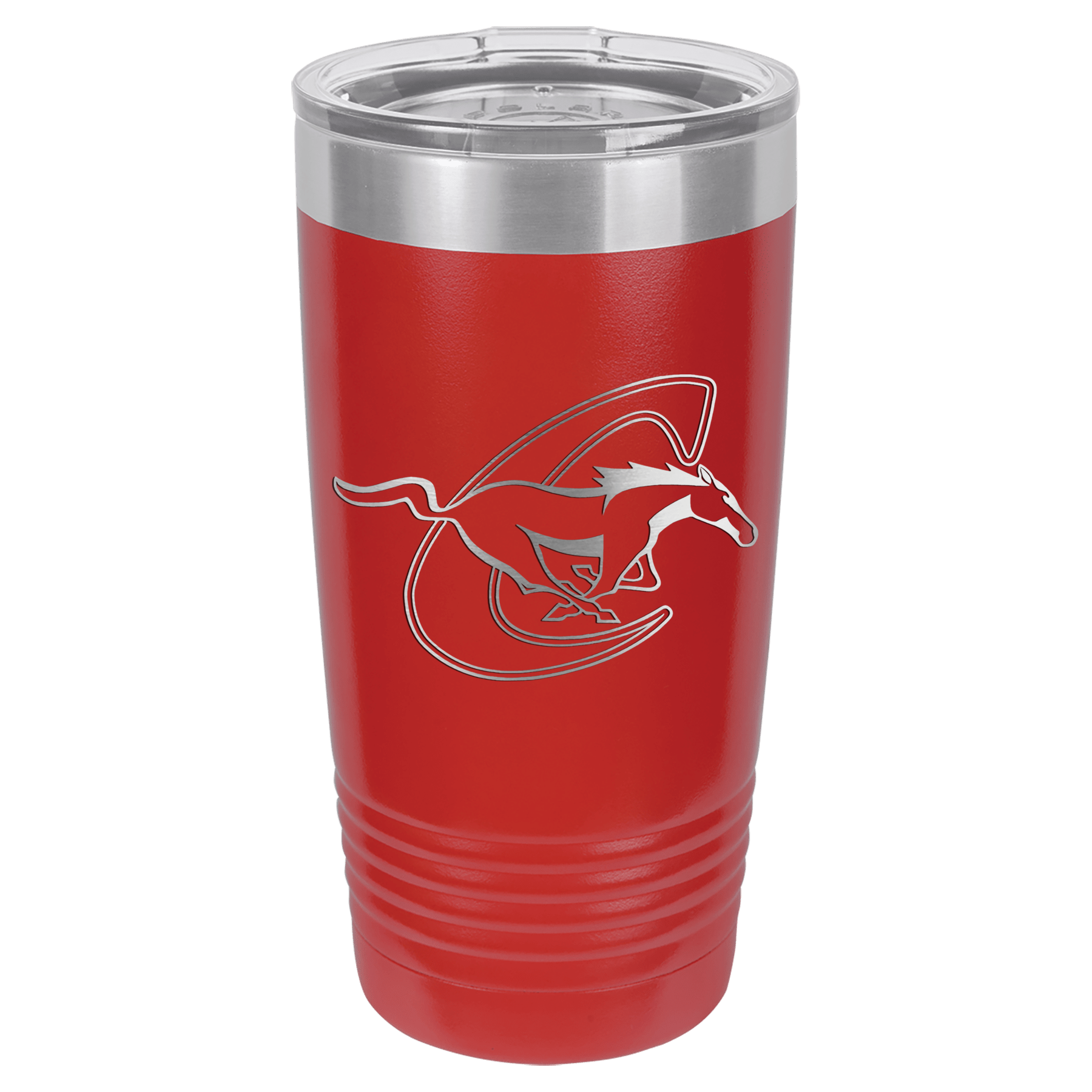 Red 20oz tumbler with Chisum horse and name